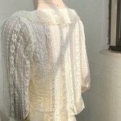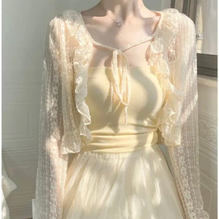 ストライプレースショートカーディガンは、レースとカーディガンの融合が美しい一枚。繊細なレースの透け感と、爽やかなストライプ柄が絶妙なバランスを醸し出しています。ふんわりとした袖とショート丈が、女性らしいシルエットを演出してくれます。