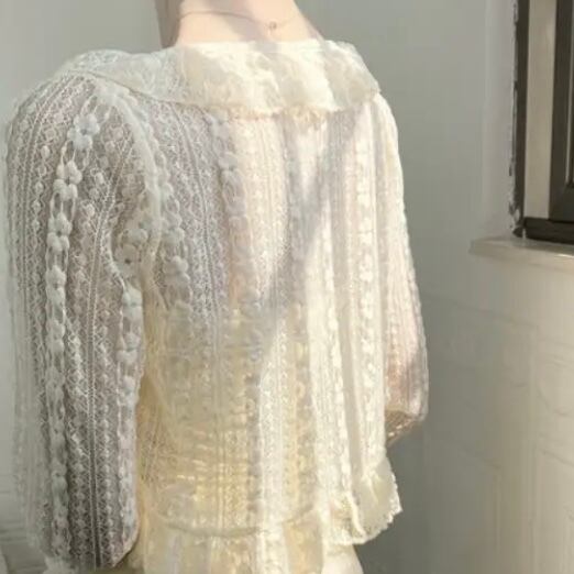 このカーディガンは、デイリーコーディネートに程よいアクセントをプラスしてくれる一着です。カジュアルなコーデにも、オフィススタイルにもマッチし、1枚でさらりと羽織れる軽やかさが魅力です。華やかなレースデザインは、特別な日にもぴったり。